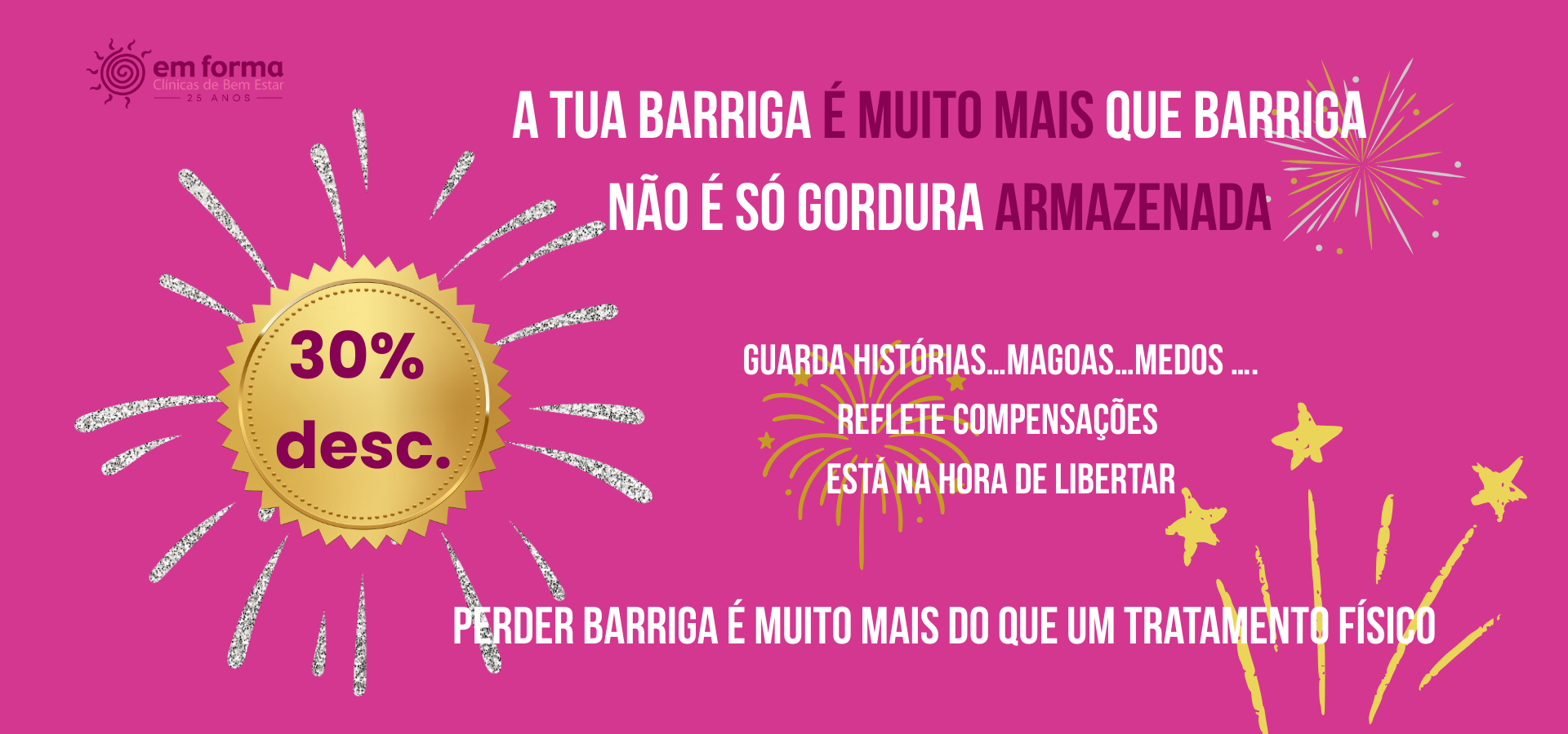 Clínicas Em FormaHá 27 anos a cuidar da saúde. Desbloqueamos vidas promovemos a qualidade de vida. Seja mais saudável física, psíquica e emocionalmente. A vida tem que ser vivida e não sofrida.